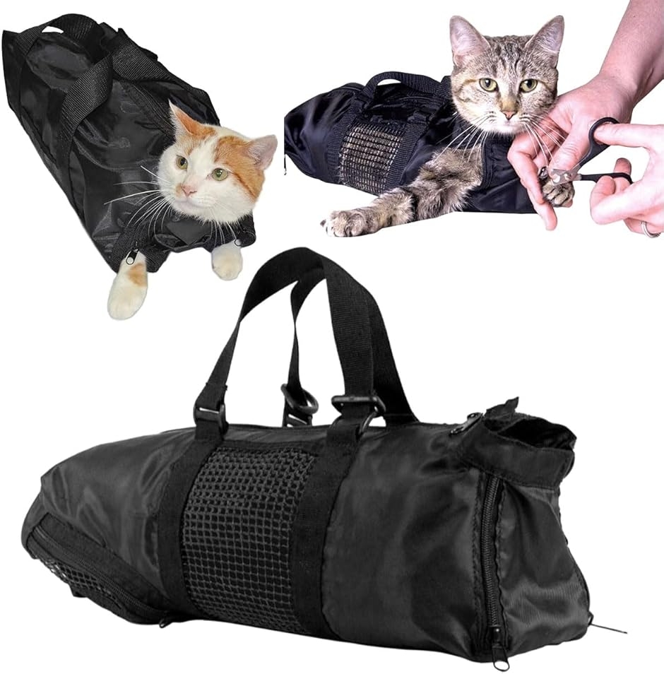 「暴れる猫ちゃん対策に頼れる安心設計」 爪切りのたびに暴れてしまう、噛みつきや引っかきが心配、そんなお悩みに応える猫用グルーミングバッグです。体をやさしく包み込む構造により、動きを適度に制限しながらも圧迫感を与えにくい設計となっています。ケア中のストレス軽減にも。飼い主の手元を守りながら安全にお手入れができるため、これまで苦労していた爪切り時間が、安心して向き合える穏やかなひとときへと変わります。「足を片方ずつ出せる便利なファスナー構造」 前足・後足それぞれに対応したファスナー付きで必要な部分だけを外に出してケアが可能。片足ずつ爪切りを行えるため猫ちゃんへの負担を抑えながらスムーズにお手入れが進みます。無理に押さえつける必要がないため飼い主のストレスも軽減。落ち着いた状態で作業でき深爪の予防にもつながります。自宅でのトリミングがより安全かつ効率的になり初心者の方でも扱いやすい便利グッズです「通気性に優れたメッシュx丈夫なオックスフォード生地」 本体には耐久性のあるオックスフォード生地を使用し、噛みつきや引っかきに配慮したしっかりとした作りに仕上げました。さら・ |