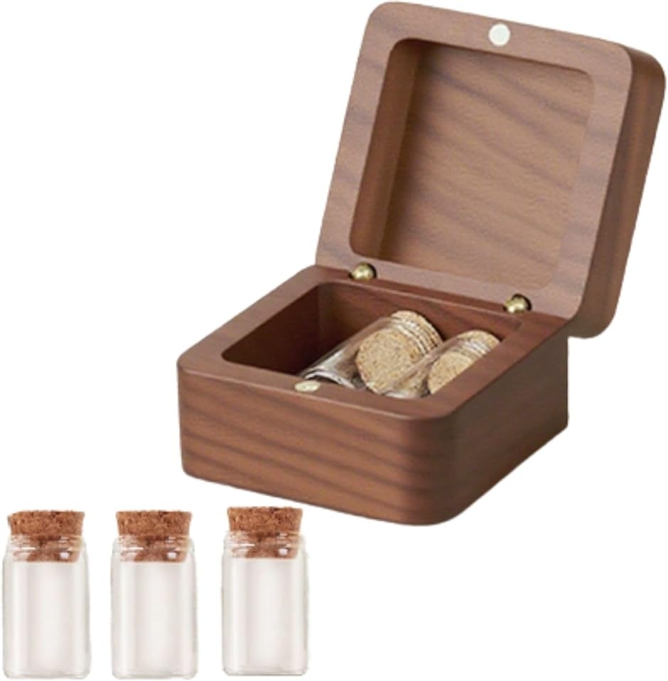 バリエーションコード : 2BUQSK10R1「大切なペットとの絆を深める手元供養を支援」このメモリアルボックスは、愛する犬や猫を亡くされた飼い主様の心の拠り所となります。手元供養をすることで、寂しい時や辛い時に箱に触れたり語りかけたりでき、ペットとの絆を永遠に感じながらグリーフケアをサポートします。「蓋付きで大切な遺品をしっかりと保護」蓋が付いたボックス型で、中に入れた遺品をホコリや外部の衝撃からしっかりと守ります。デリケートな遺毛や遺骨を清潔に、そして安全に保管できるため、安心して長期間にわたり供養を続けることができます。「多種類を分けて保管できるビン3本付き」本体の中に小さなガラスビンが3本セットされているため、遺骨、遺毛、乳歯、爪といった複数の形見を種類ごとに分けて大切に保管できます。混ざる心配がなく、小さなミニ骨壷として非常に便利です。「商品内容」サイズ: 5.6 x 5.6 x 4cm セット内容:本体、ビン3本 カラー:ブラウン/ナチュラル |